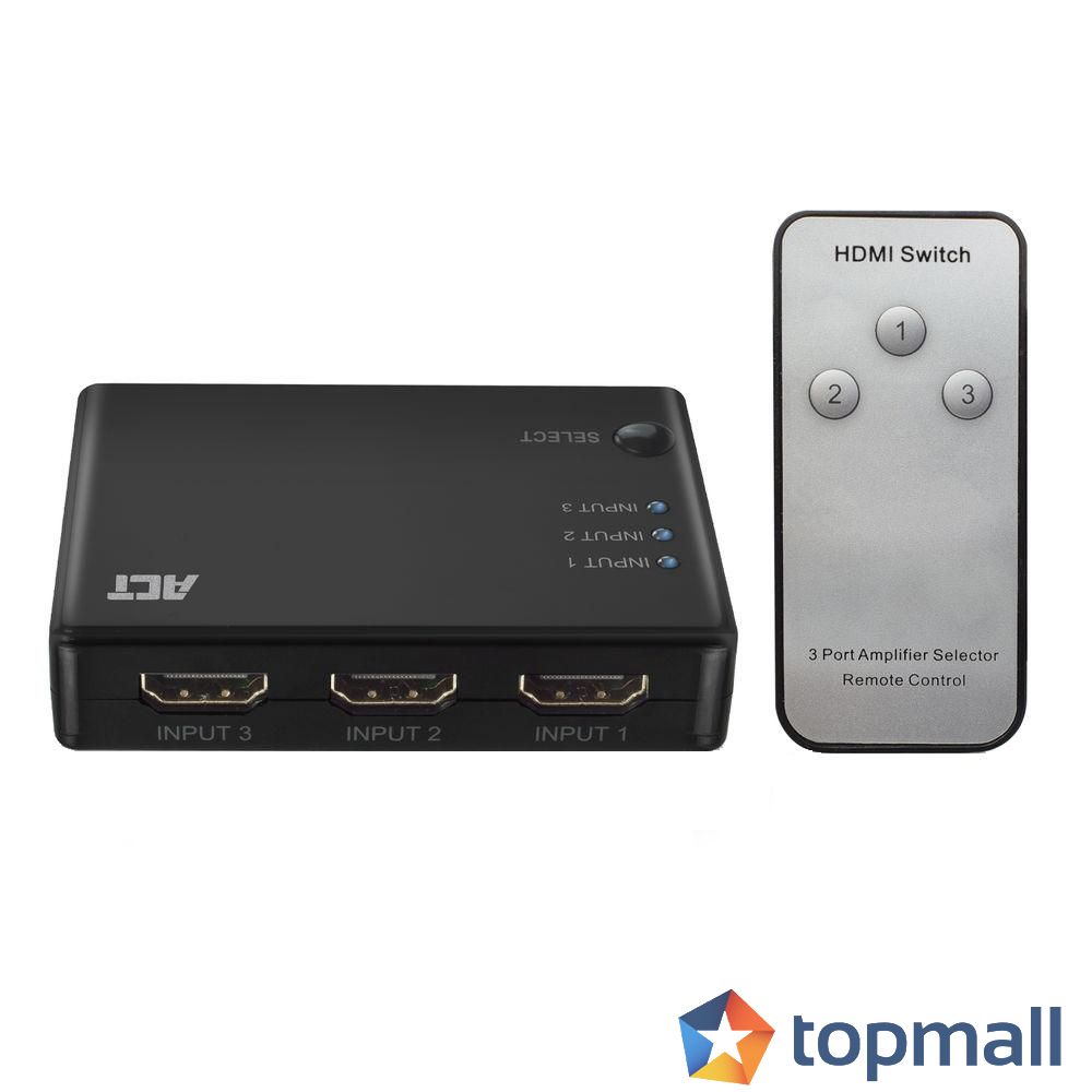 3 портов HDMI суич ACT , 4K@60Hz, USB, Дистанционно, Черен, (35935146)