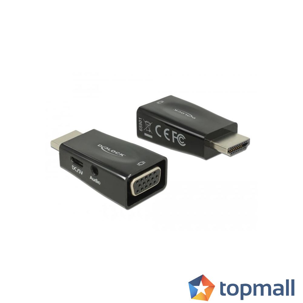 Адаптер Delock, HDMI мъжко - VGA + microUSB + Audio женско, Черен, (35935136)