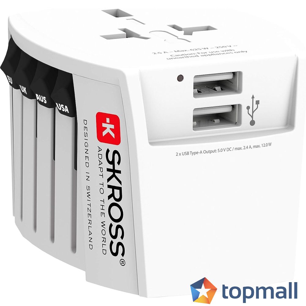 Адаптер SKROSS PRO MUV 2 x USB-A, 1.302960, World, Бял, (35937081)
