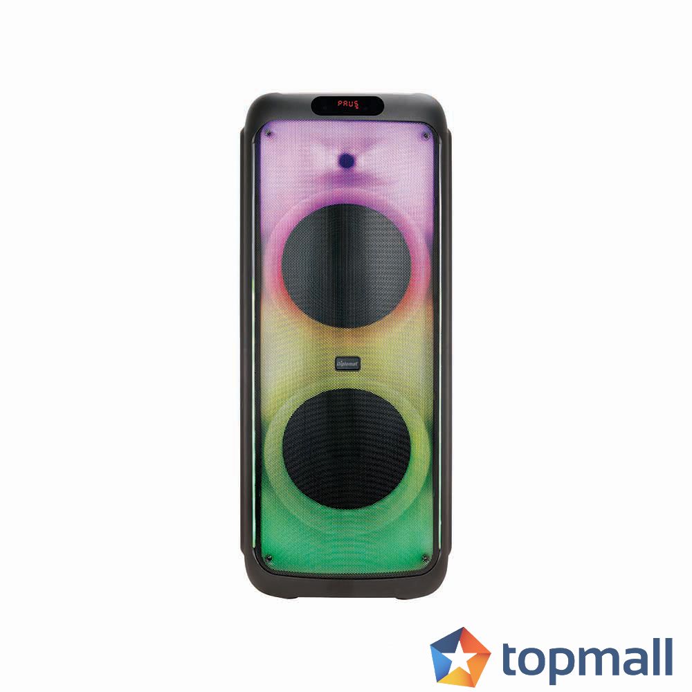 Активна тонколона Diplomat DR20; Говорител: 2x12''+3''; Функции: USB слот, FM радио, Bluetooth; Цветно осветление; Батерия: 12V/7500mA; Честотна характеристика: 30Hz-20kHz; Съпротивление: 4oHm; Мощност: 120W; Аксесоари: USB кабел, 2бр. безжични микрофони; Цвят: Черен; Нето тегло: 20.00kg; Бруто тегло: 22.65kg; Размери (ВхШхД): 1000x410x390mm; Размери опаковка (ВхШхД): 1090x460x440mm; Гаранция за физически лица: 2 години;