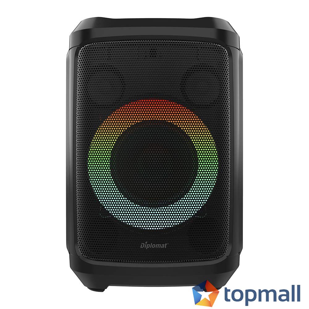 Активна тонколона Diplomat DR5; Говорители: 5.25"+2x2''; Функции: USB слот, AUX , FM радио, Bluetooth; Цветно осветление; Батерия: 12V/5500mA; Честотна характеристика: 48Hz-20kHz; Съпротивление: 4oHm; Мощност: 50W; Аксесоари: Кабел за зареждане, 1бр. безжичен микрофон; Цвят: Черен; Нето тегло: 5.4kg; Бруто тегло: 6.5kg; Размери (ВхШхД): 371x248x248mm; Размери опаковка (ВхШхД): 465x310x300mm; Гаранция за физически лица: 2 години;