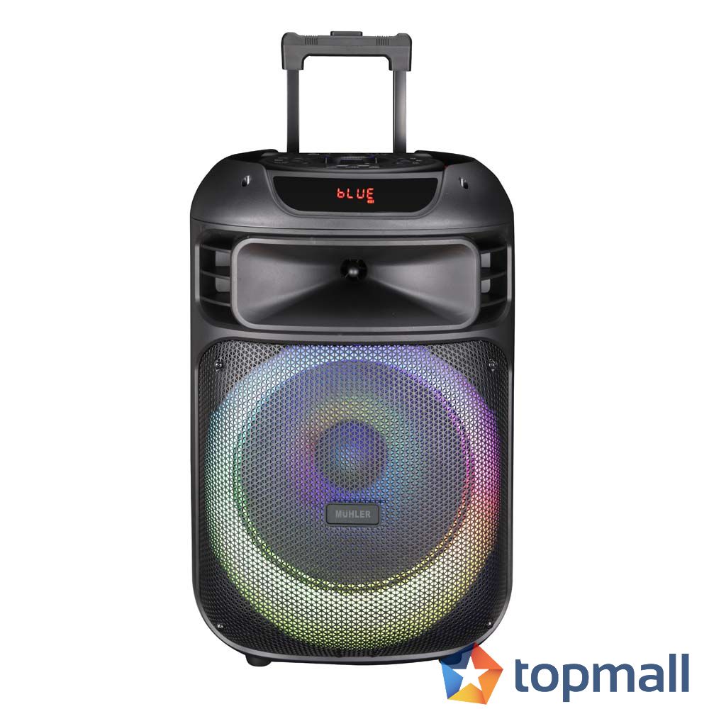 Активна тонколона Muhler MAX333XR; Говорители: 12"+1''; Функции: USB/TF слотове, FM радио, Bluetooth; Цветно осветление; Дръжка и колелa; Батерия: 7.4V/3600mA; Честотна характеристика: 45Hz-20kHz; Съпротивление: 3oHm; Мощност: 40W; Аксесоари: Адаптор за зареждане, 2бр. безжичен микрофон; Цвят: Черен; Нето тегло: 6.35kg; Бруто тегло: 8.7kg; Размери (ШхВхД): 350x535x325mm; Размери опаковка (ШхВхД): 378x573x365mm; Гаранция за физически лица: 2 години;