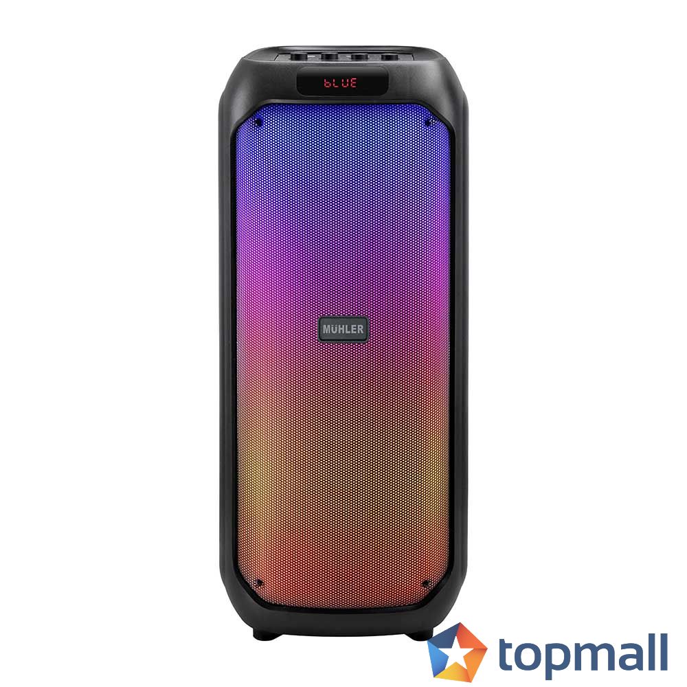 Активна тонколона Muhler MAX881R; Говорител: 2x8''; Функции: USB слот, FM радио, Bluetooth; Цветно осветление; Батерия: 7.4V/3600mA; Честотна характеристика: 45Hz-20kHz; Съпротивление: 3oHm; Мощност: 40W; Аксесоари: 2бр. безжични микрофони; Цвят: Черен; Нето тегло: 6.50kg; Бруто тегло: 7.15kg; Размери (ВхШхД): 700x285x270mm; Размери опаковка (ВхШхД): 735x305x290mm; Гаранция за физически лица: 2 години;