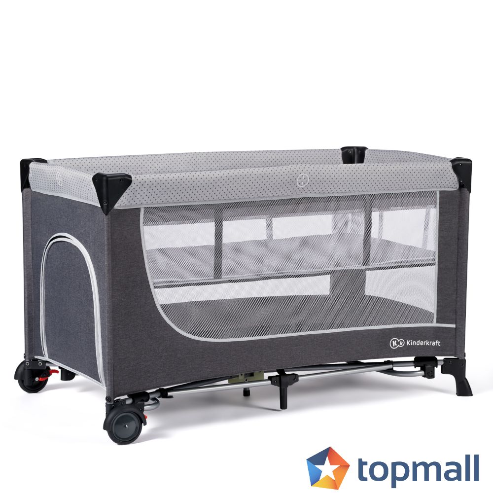 Бебешка преносима кошара KinderKraft LEODY 2022, Сива, (15101)