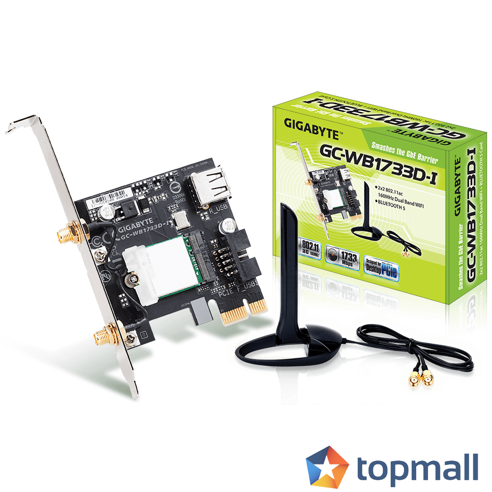 Оценете:Безжичен PCI Express адаптер Gigabyte GC-WB1733D-I, 2x2 802.11ac 160MHz, Bluetooth 5.0, (35933334)
