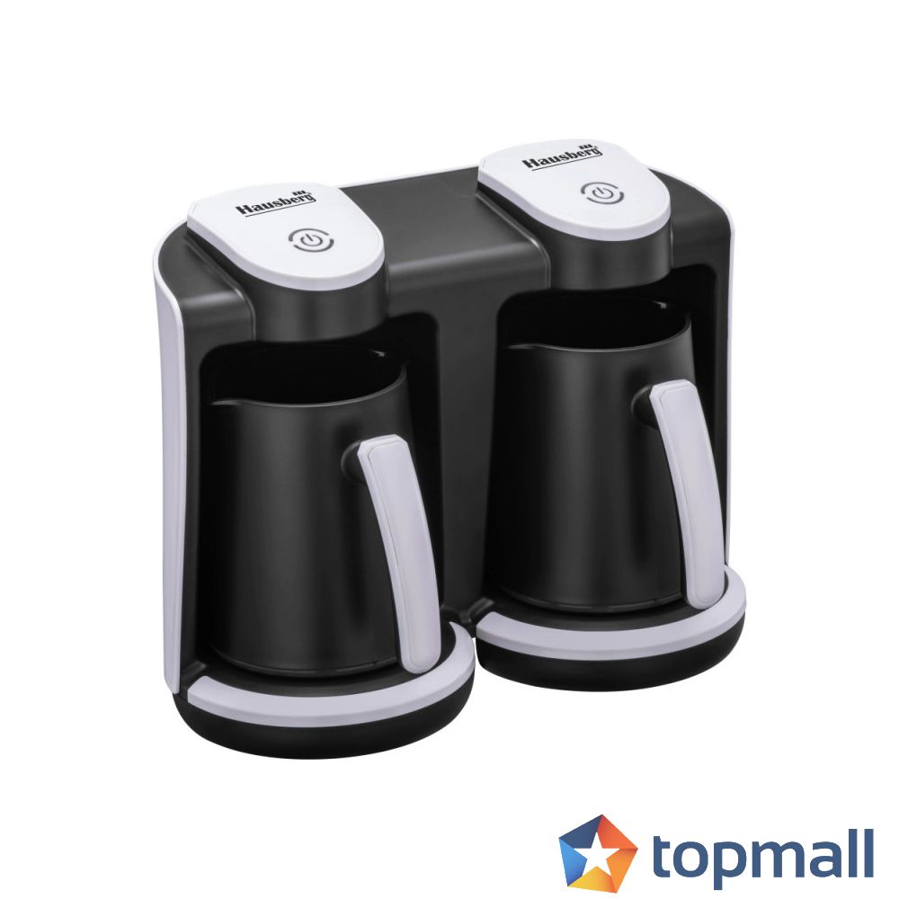 Кафемашина за турско кафе Hausberg HB-3820AB, 800W, 500 мл, Двойна, Звуков сигнал, 8 кафета, Черен/бял, (17677)