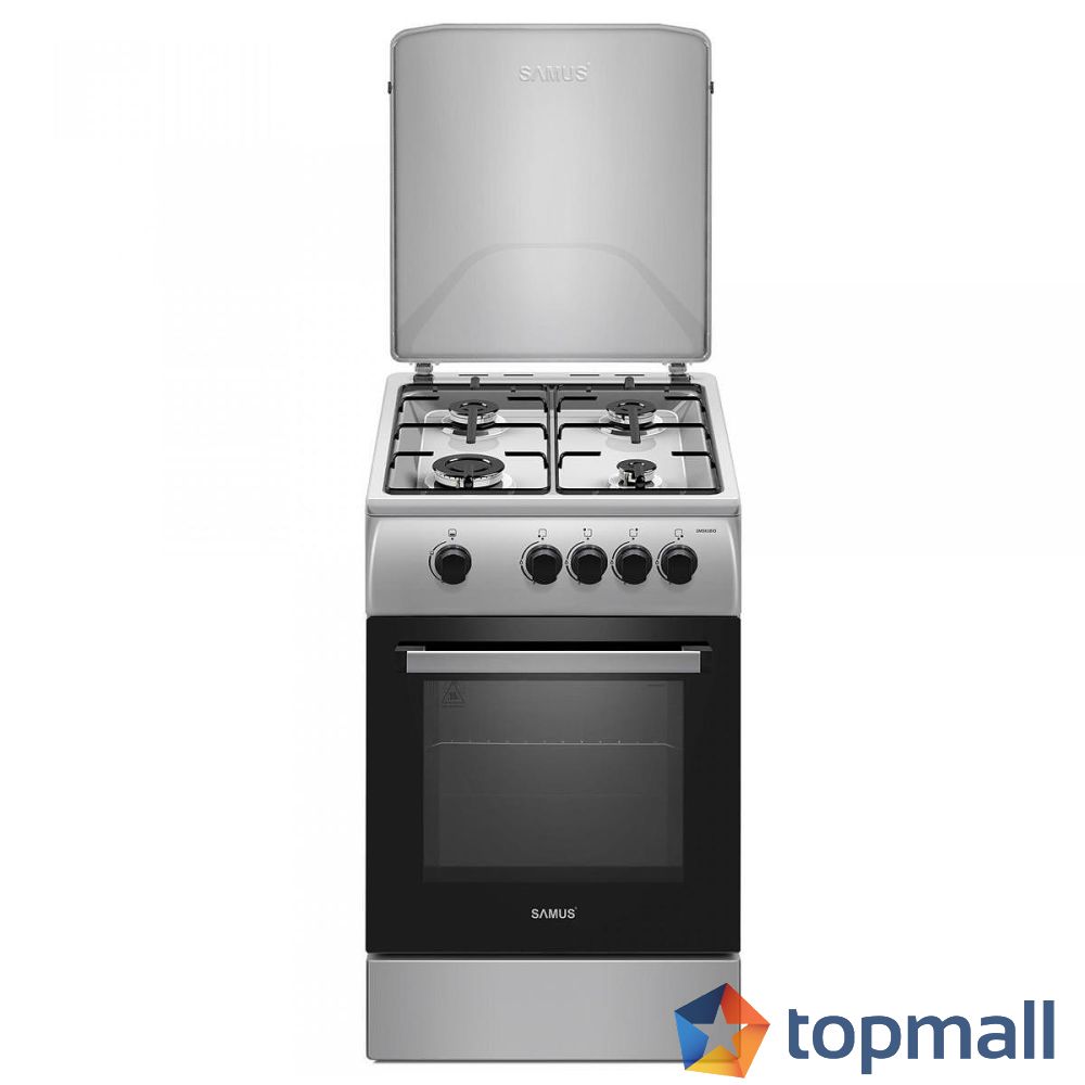 Газова печка SAMUS SM561BXS. Цвят от неръждаема стомана. Тава и грил за фурната. (22139)