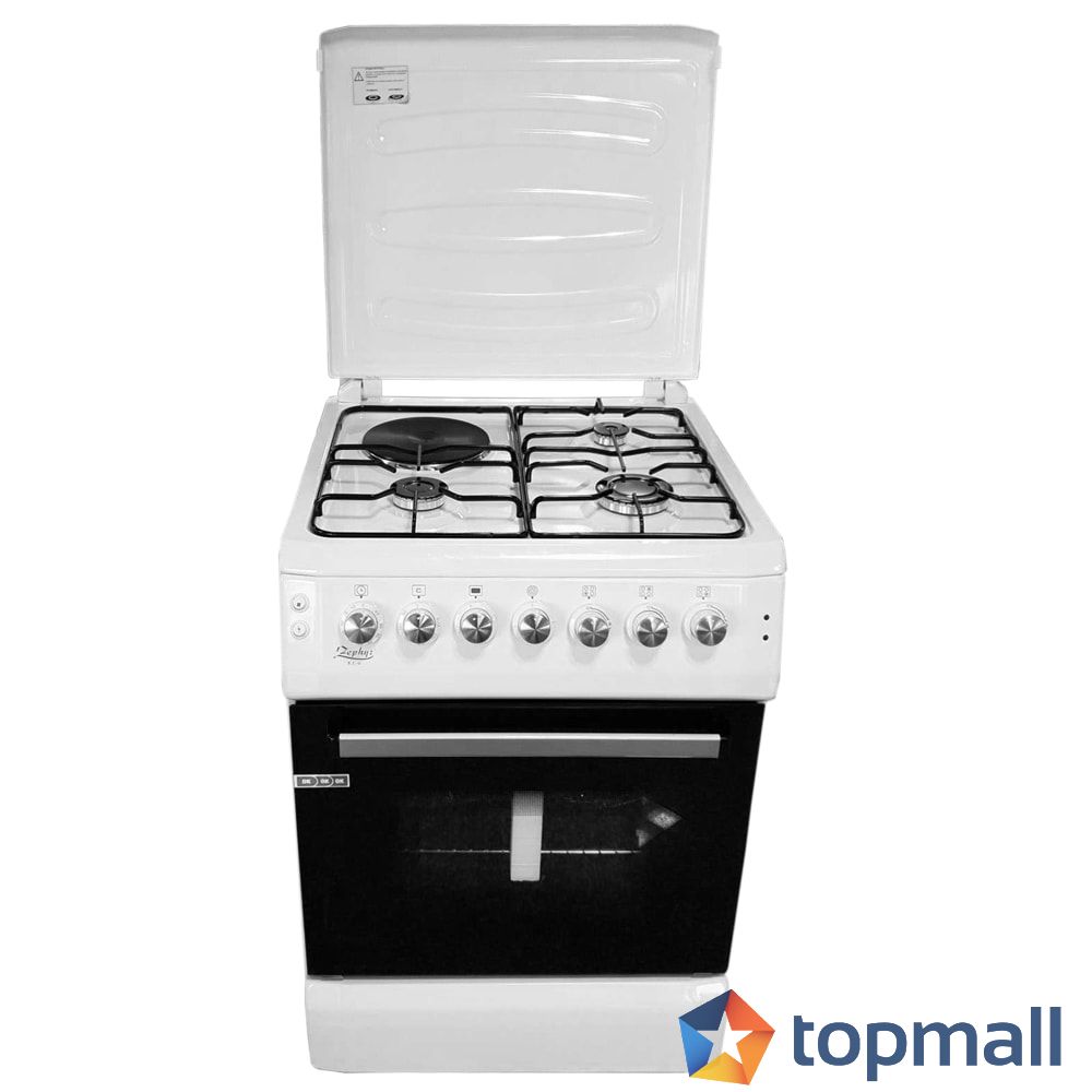 Комбинирана готварска печка с чекмедже ZEPHYR ZP 1441 1E60F, 3 газови/1 електрически котлон, 6 функции, Клас А, Бяла