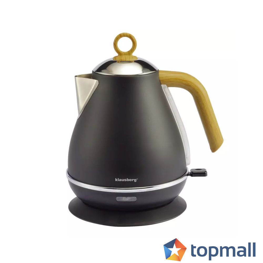 Електрическа кана Klausberg KB 7706, 2200 W, 1.7 l, Стомана, Бързо загряване, Дървена дръжка, Черен/кафяв, (20777)