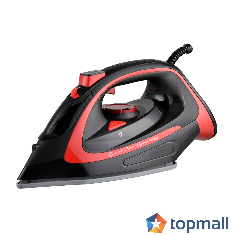 Парна ютия с керамична плоча ZEPHYR ZP 1050 BQC, 3000W, Самопочистване, Вертикално гладене, Черен/червен