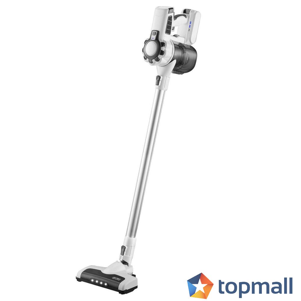 - Включва: Батерия, моторизирана четка за под с LED светлина, 2 дюзи за цепки и тъкани, стенен монтаж, AC/DC захранващ адаптер
