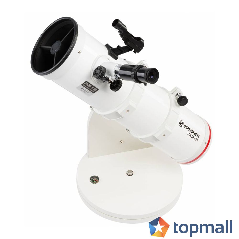 Bresser Messier Dobsonian Telescope is a compact tabletop telescope with powerful optics. This telescope comes pre-assembled ex-factory. It is easy to start observing with this telescope. Put the telescope on a table, and point the telescope to the observed object. The kit includes two Kellner eyepieces (25mm and 9mm), LED finderscope, and a moon filter. This telescope also features the built-in compass and circular level for orienting the telescope. It is a wonderful choice for amateur and even experienced users. Its main advantages are quick setup and the ease of use.