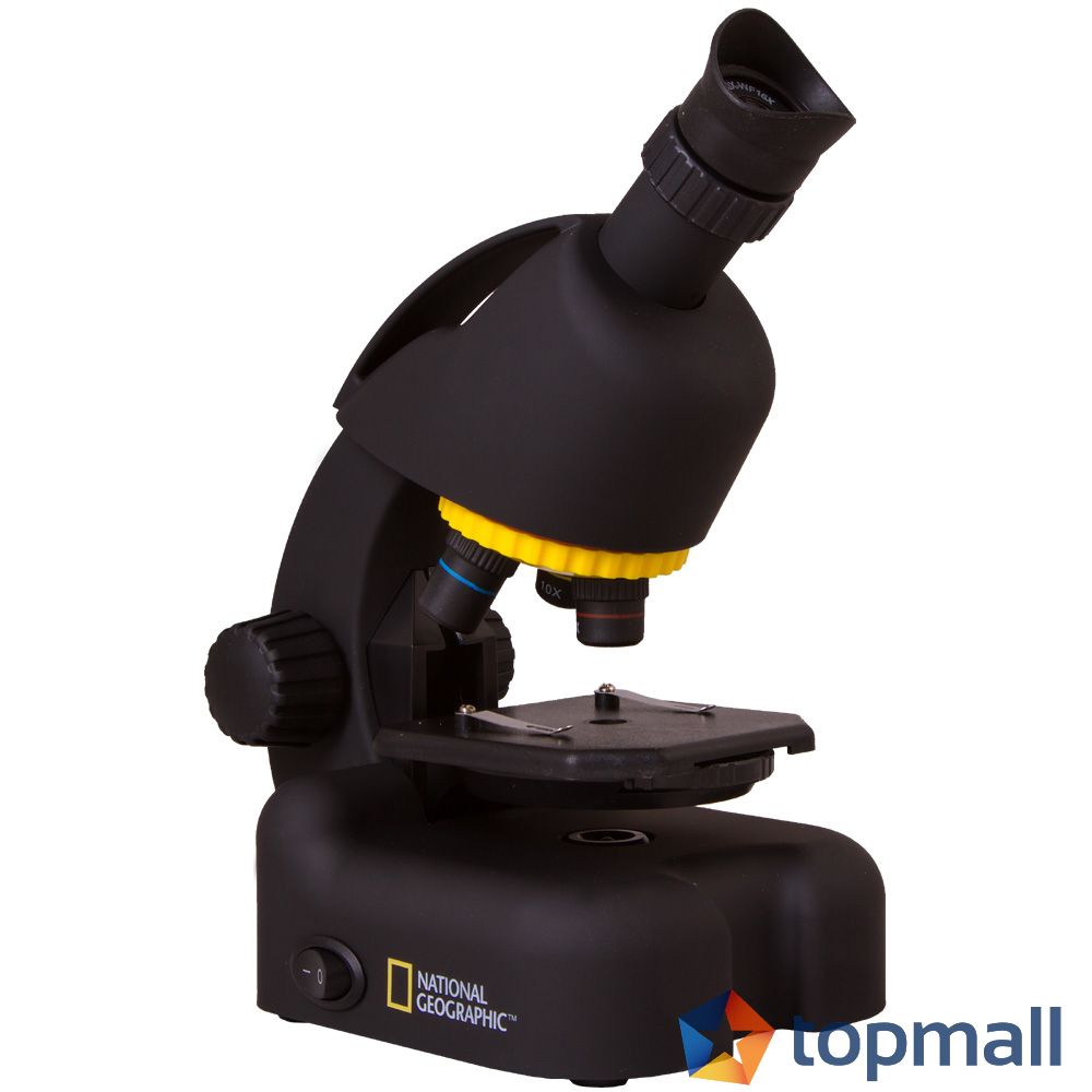 Bresser National Geographic 40–640x Microscope is made specifically for young explorers. The microscope is equipped with a revolving nosepiece, and by rotating it, you can switch between three fixed magnifications in the 40–640x range. The lower LED illumination powered by batteries (included in the kit) is used for studying samples in transmitted light.