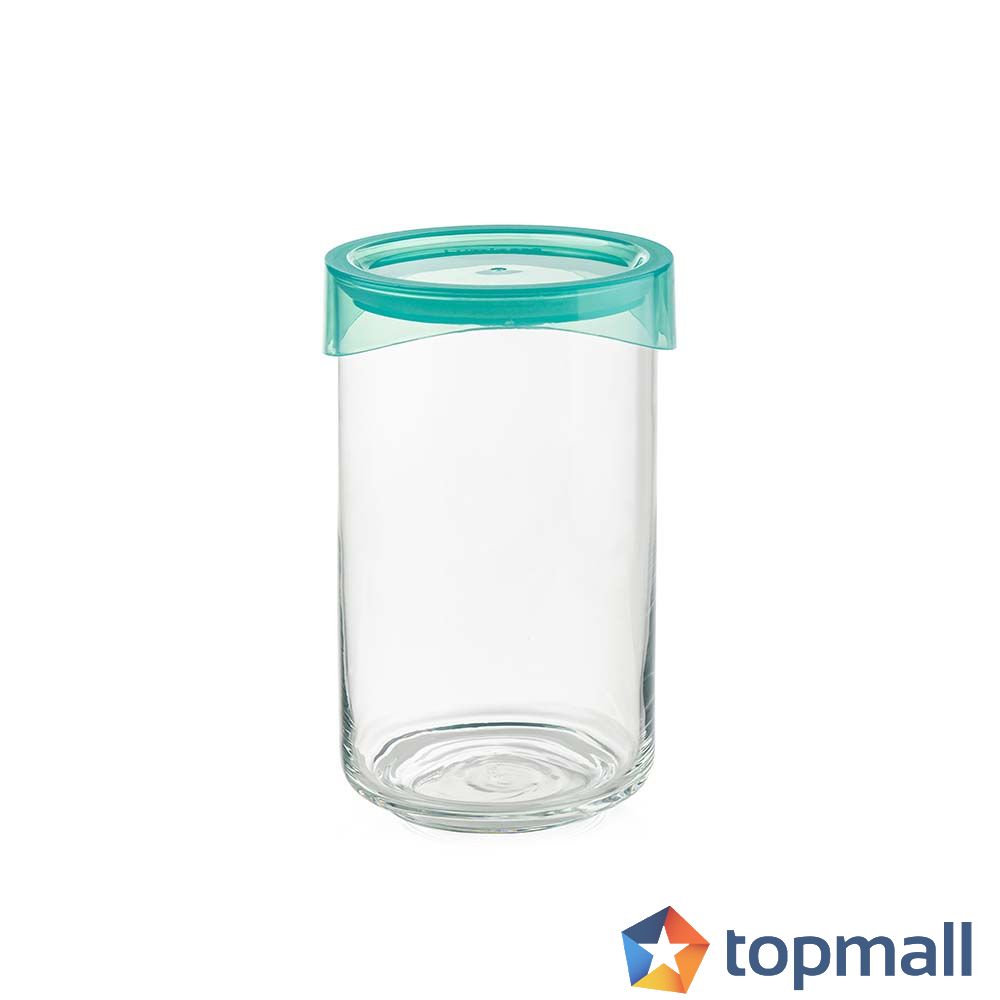 Предназначен за съхранение на всякакви продукти, както в кухненски шкаф, така и в хладилник. Размери: Ø10.6xH17.1cm Вместимост: 1L Изработен от закалено стъкло с плътно затварящ се пластмасов капак Подходящ за микровълнова фурна (без капака) Подходящ за почистване в съдомиялна машина