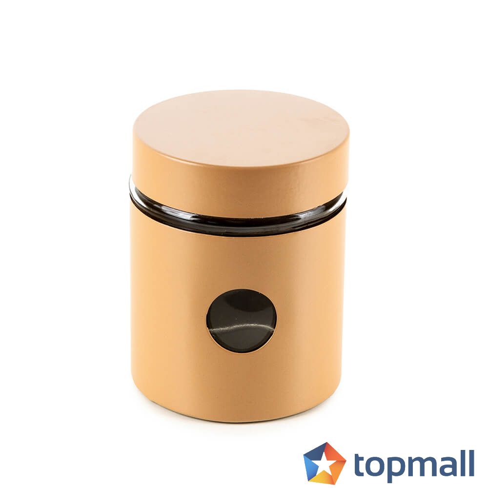 Стъклено тяло с метален обков Пластмасов капак с винтово затваряне Отвори, изрязани в металната обвивка за видимост на съдържанието и неговото количество Размери: Ø10xH12cm Вместимост: 550ml Не е подходящ за почистване в съдомиялна машина