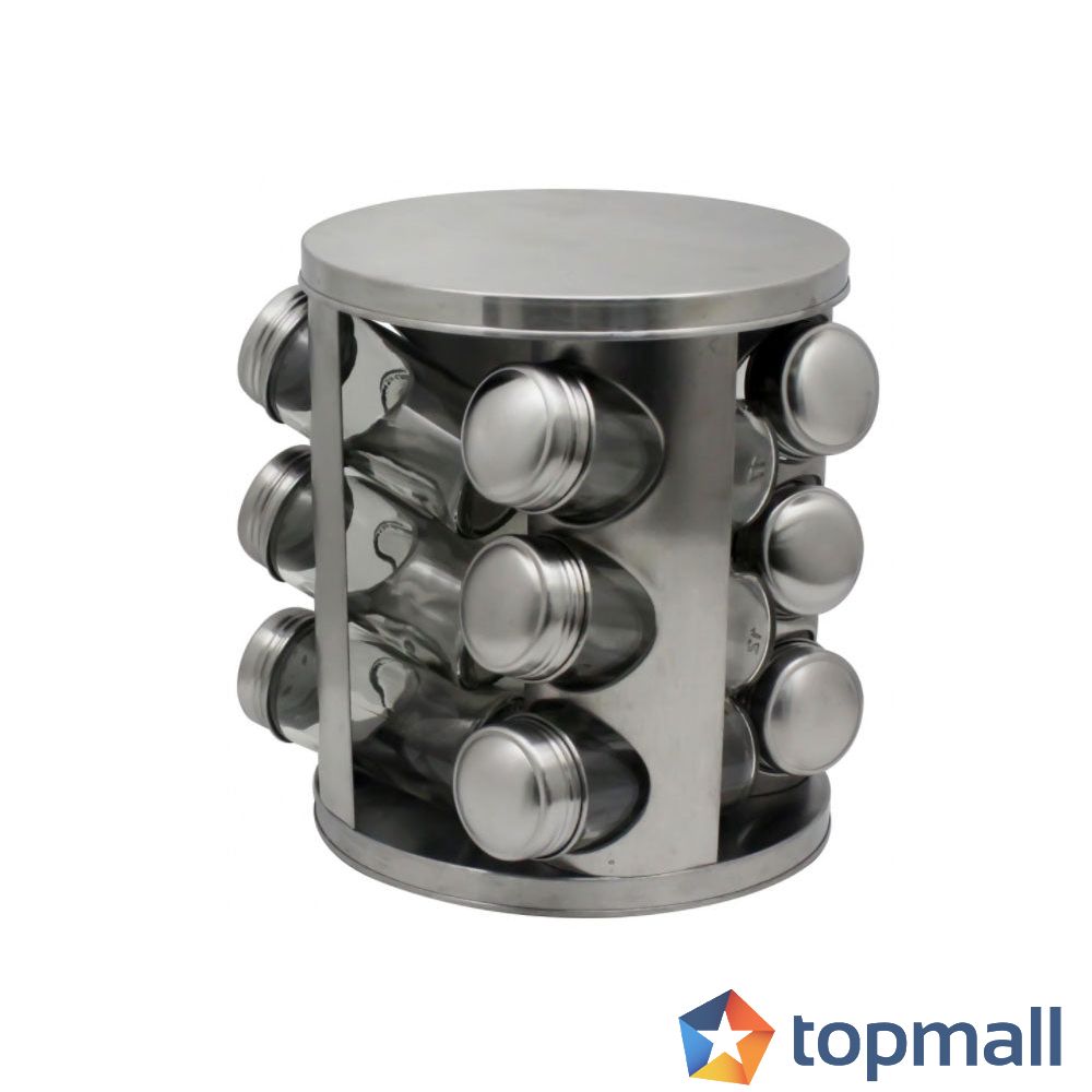 Бурканчета за подправки на стойка ZEPHYR ZP 1217 CR12, 12 бр. бурканчета, 3 нива, Въртяща се основа, Сребрист, (18577)