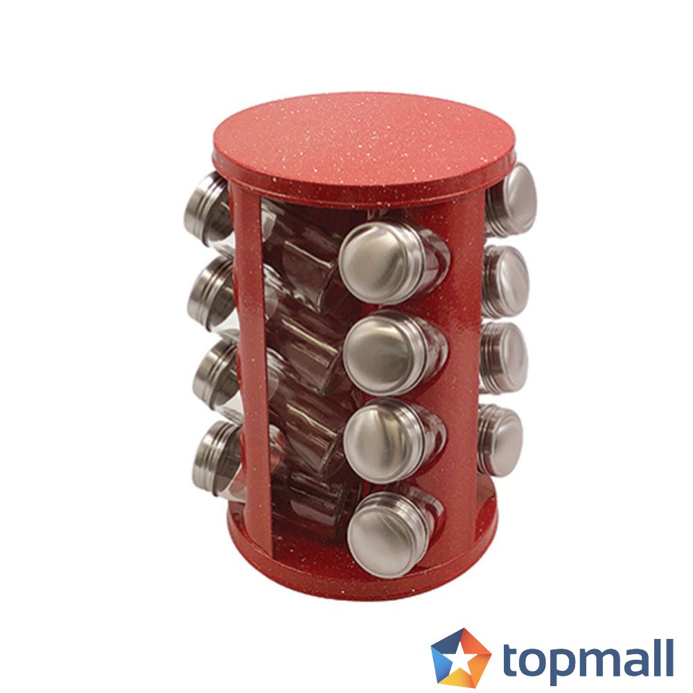 Бурканчета за подправки на стойка ZEPHYR ZP 1217 CR16, 16 бр. бурканчета, 4 нива, Въртяща се основа, Червен мрамор, (18570)