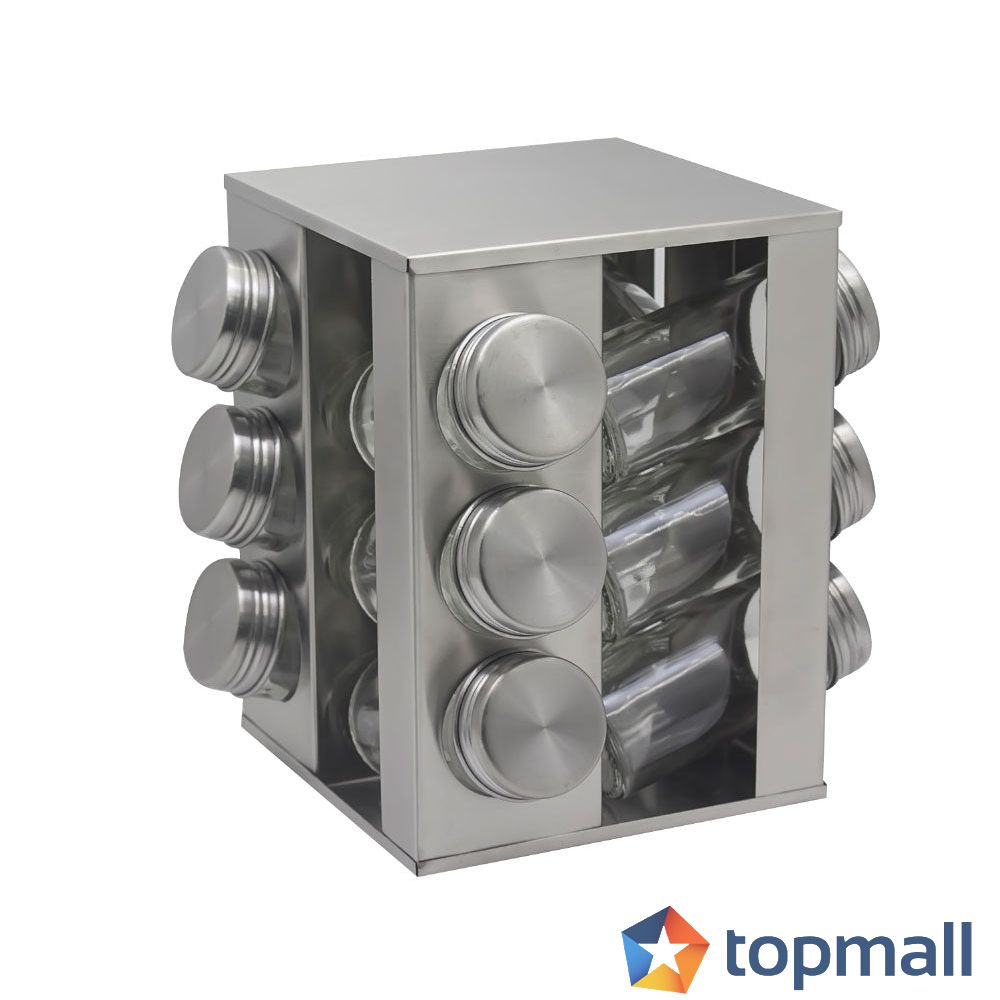 Бурканчета за подправки на стойка ZEPHYR ZP 1217 CS12, 12 бр. бурканчета, 3 нива, Въртяща се основа, Сребрист, (18562)