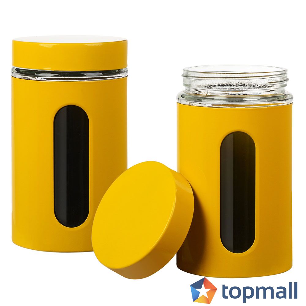 Предназначен за съхранение на сухи и течни съставки и продукти както в кухненски шкафове, така и в хладилник Комплектът съдържа: буркан - 2 броя с вместимост 1.05L размер на буркана: Ø10.5xH17.6cm Овалните прозорчета позволяват лесно да следите вида и количеството от съхранявания продук Изработен от стъкло и метал, пластмасова вътрешна част на капака с винт Препоръчва се почистване на течаща вода в мека гъба