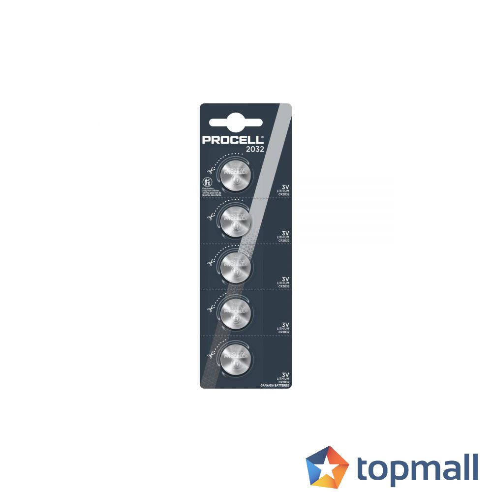 Бутонна батерия DURACELL PROCELL CR2032, 3V, 5 бр. в блистер, Литиева, /цена за 1 батерия/, (35936464)