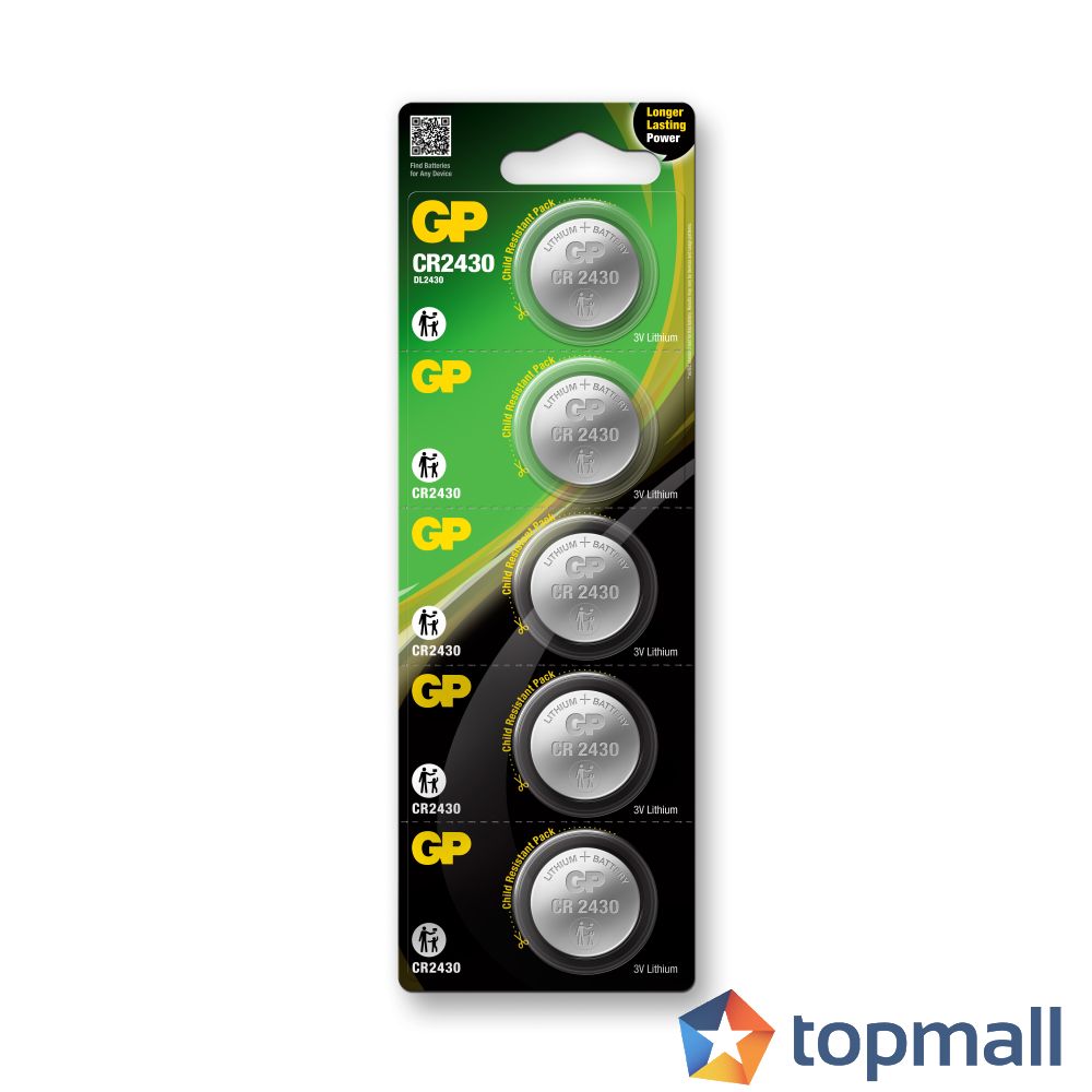 Бутонна батерия литиева GP CR2430, 3V, 5 бр. в блистер, цена за 1 бр., (35932916)
