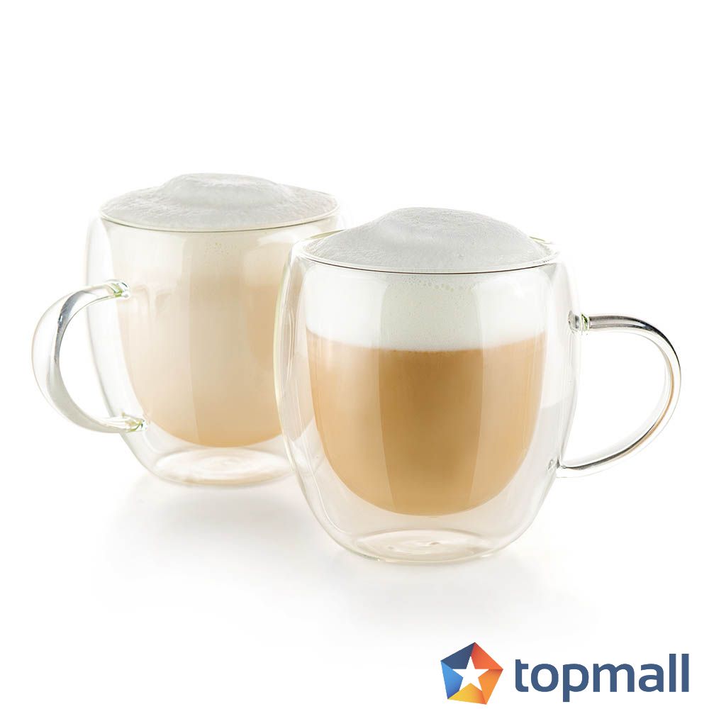 Комплектът съдържа: чаши за чай и кафе с дръжка с вместимост 250ml - 2 броя размери на чашата: Ø8.3xH8.7cm Изработена от боросиликатно стъкло, което издържа на температури в диапазон 0 - 300 °С Двойните стени гарантират запазване на температурата на напитката за по-дълго време като в същото време предпазва пръстите ви от опарване при хващане Не се препоръчва за почистване в съдомиялна машина Подходяща за ползване в микровълнова печка