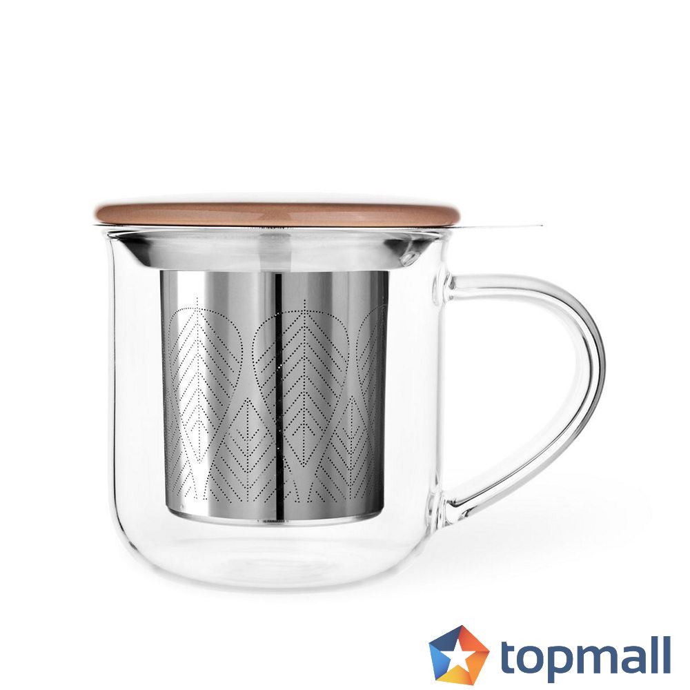 Предназначена за сервиране на топли напитки Размери: Ø9xH12.8cm Вместимост: 400ml С цветно порцеланово капаче за запарка С цедка от висок клас неръждаема стомана Изработена от боросиликатно стъкло Материали, устойчиви на високи градуси Подходяща за почистване в съдомиялна машина