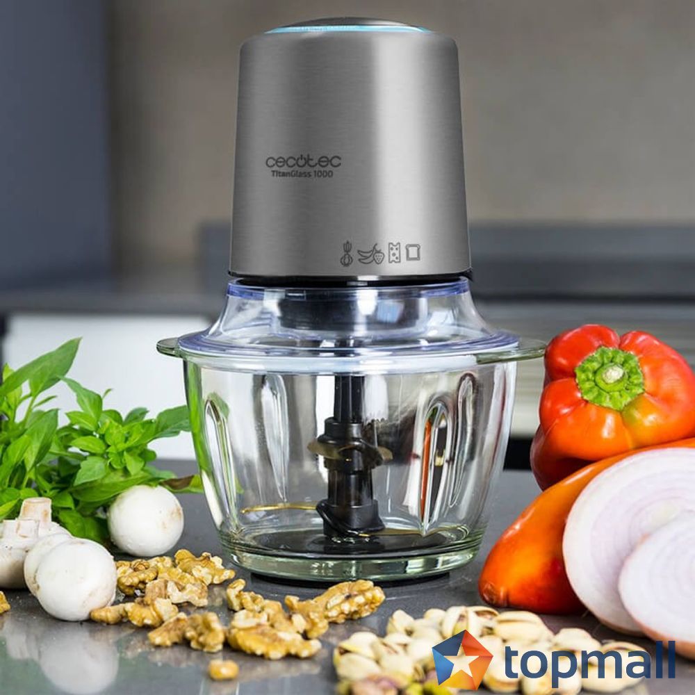 Чопър Cecotec Titan glass 1000, 400W, стъклена купа, титаниеви остриета, троши лед, сив, (4718)