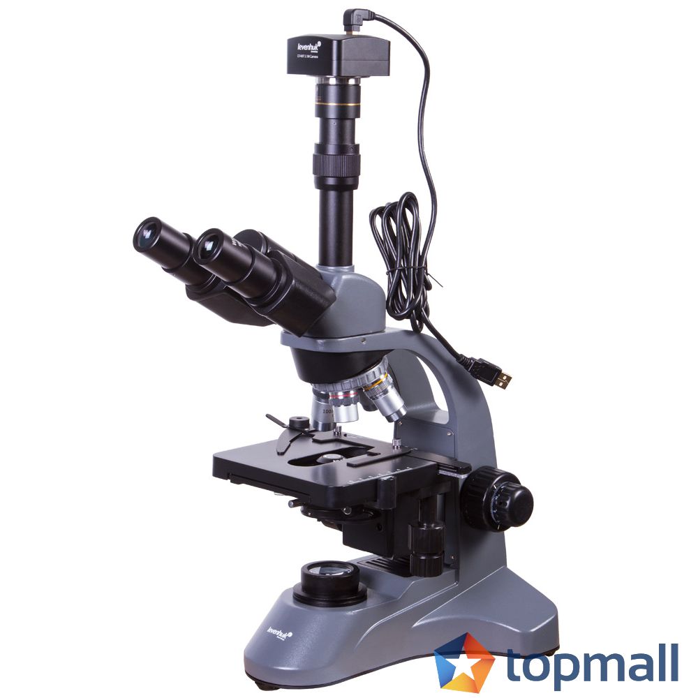 Цифровият микроскоп Levenhuk D740T е предназначен както за визуални наблюдения чрез окуляра на микроскопа, така и за предаване на данни на монитора на компютър. Микроскопът се получава с модерна камера 5 Mpx, която се монтира в тръбата на окуляра, за да се предават изображенията към монитора на компютър в реално време. Понеже микроскопът има тринокулярна глава, Вие можете в същото време да държите под око (в нашия случай с двете очи) какво се случва през окулярите.