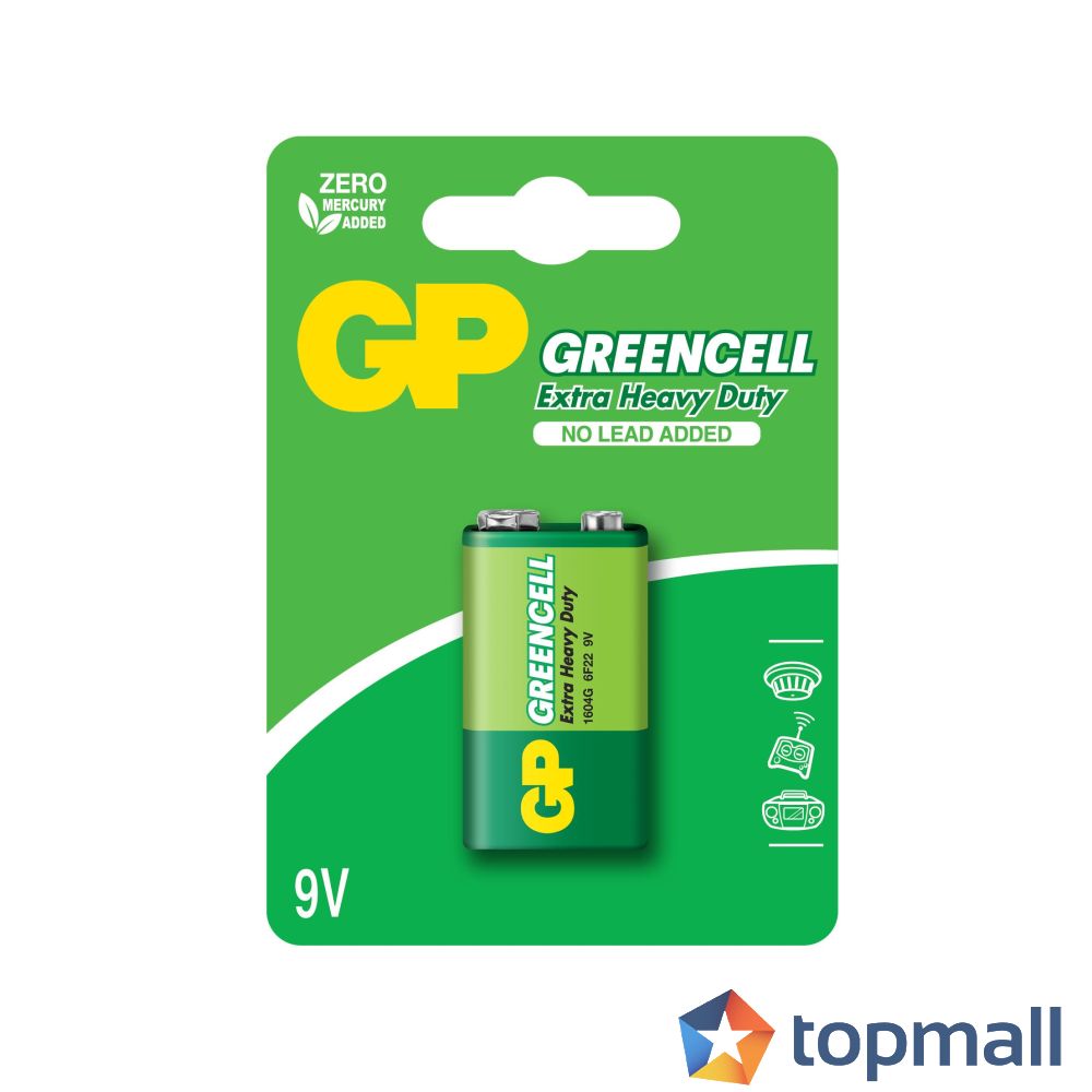 Цинк карбонова батерия GP 1604GLF-U1, 6F22, 9V, Greencell, 1 бр. блистер, (35933884)