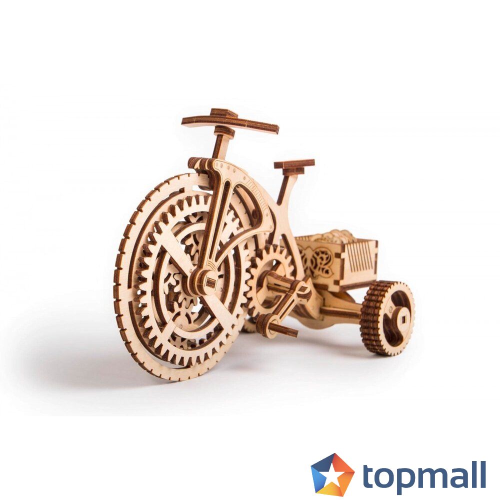 Wood Trick 3D пъзел Bicycle - Конструкторите с марката Wood Trick не са просто една обикновенна детска играчка. Това са 3D Пъзели от дърво, които са предназначени за хора над 14 годишна възраст и са много удачни за колекционери и ценители на красивото и качественото. Изработени са изцяло от екологично чисти дървени материали. За изработката им не са използвани различни бои, лакове или лепила. Сглобяването на конструкторите също става без лепила или други помощни средства. Този страхотен Дървен конструктор Bicycle има 89 части и се сглобява за около 2 часа. Това е един чудесен подарък за абсолютно всеки човек и едно прекрасно и много увлекателно занимание за цялото семейство. Конструкторът притеажава механизъм за задвижване и подвижни части, което го прави още по-интересен и впечатляващ. Може да се постави и на секция като окраса и декор от целия дом. Съберете цяла колекция от 3D Пъзелите на Wood Trick.