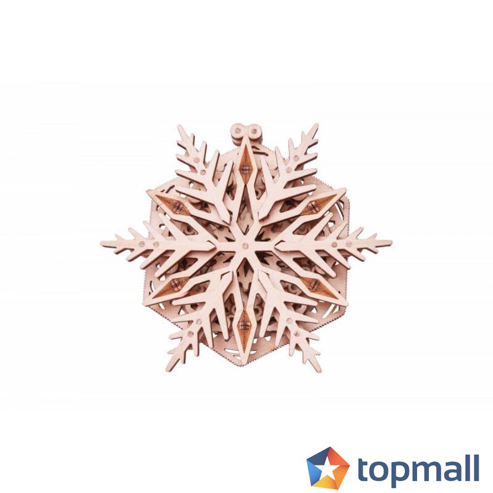 Wood Trick 3D Пъзел Woodik Snowflake - един страхотен малък дървен конструктор от реномираната украинска марка Wood Trick. изработен е изцяло от екологично чист дървен материал. Не са използвани бои, лакове или лепила. За сглобяването също не се използват лепила или друг вид помощни материали. Подходящ е за ценители и колекционери. Чудесен подарък за всеки човек и страхотна декорация на вашия дом. Този страхотен 3D Пъзел Woodik Snowflake е мини конструктор, който се състои само от 24 части и се сглобява изключително лесно и бързо, без да се използват лепила. Може да си го поставите като окраса на секцията или част от окрасата на елхата. Съберете пълна колекция от конструкторите на Wood Trick.