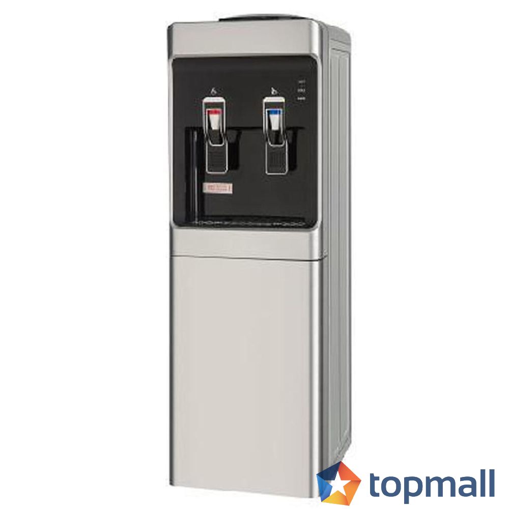 Компресорен диспенсър за вода в сребрист цвят за студена и топла вода.