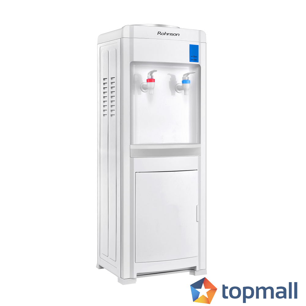 Електронен диспенсър за вода Rohnson R-9706, 420W/75W, 15/90℃, Охлаждане 0,5L/h, Затопляне 5L/h, Шкафче 14л., Бял, (16725)