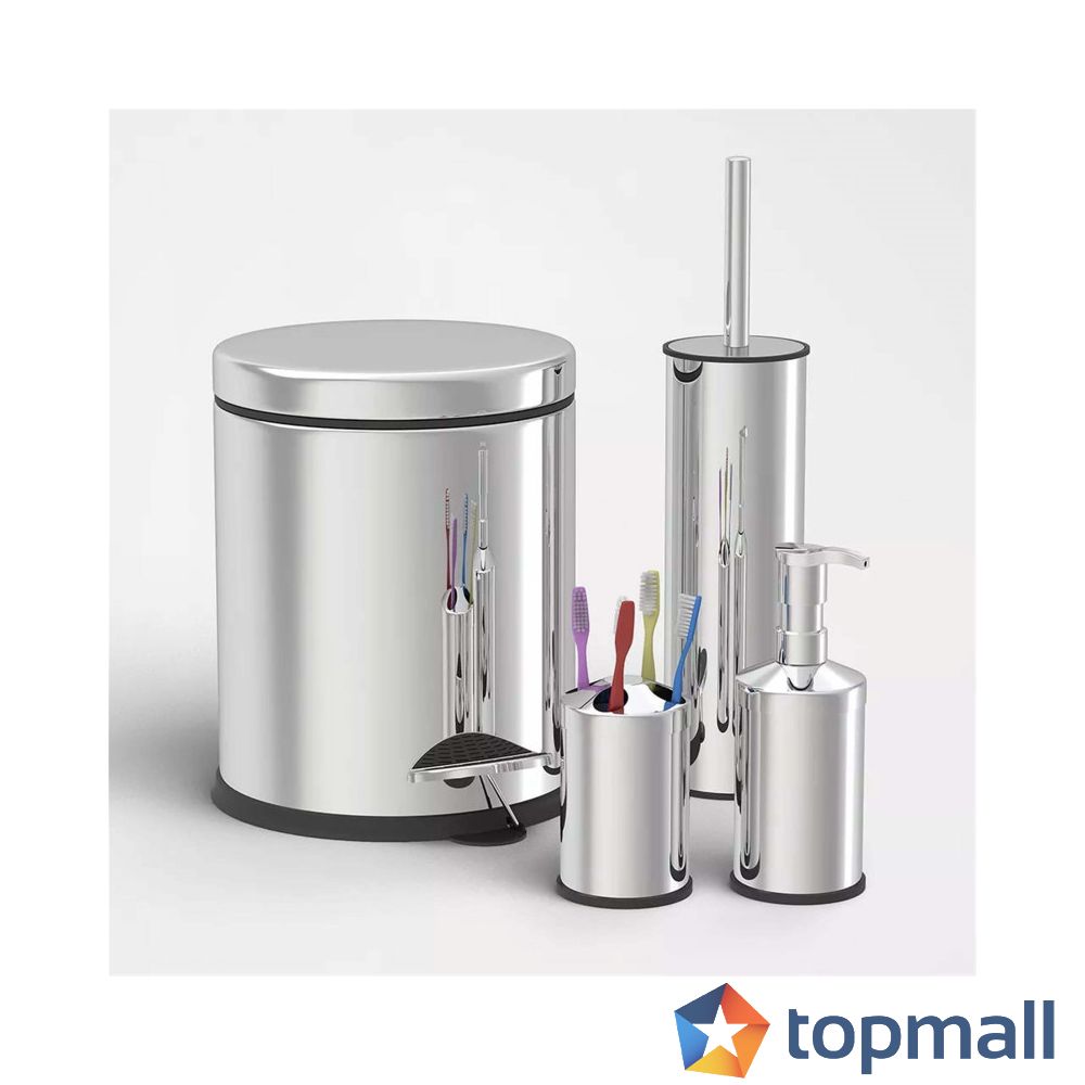 Комплект за баня Vinoks 650400, Кошче 5 литра, Четка, Дозатор, Чаша, Инокс, (20579)