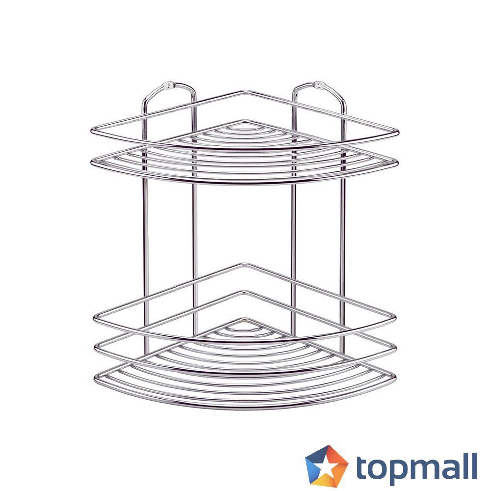 Ъглова етажерка за баня 2 нива TEKNO-TEL BK 022, Дюбели, Хром