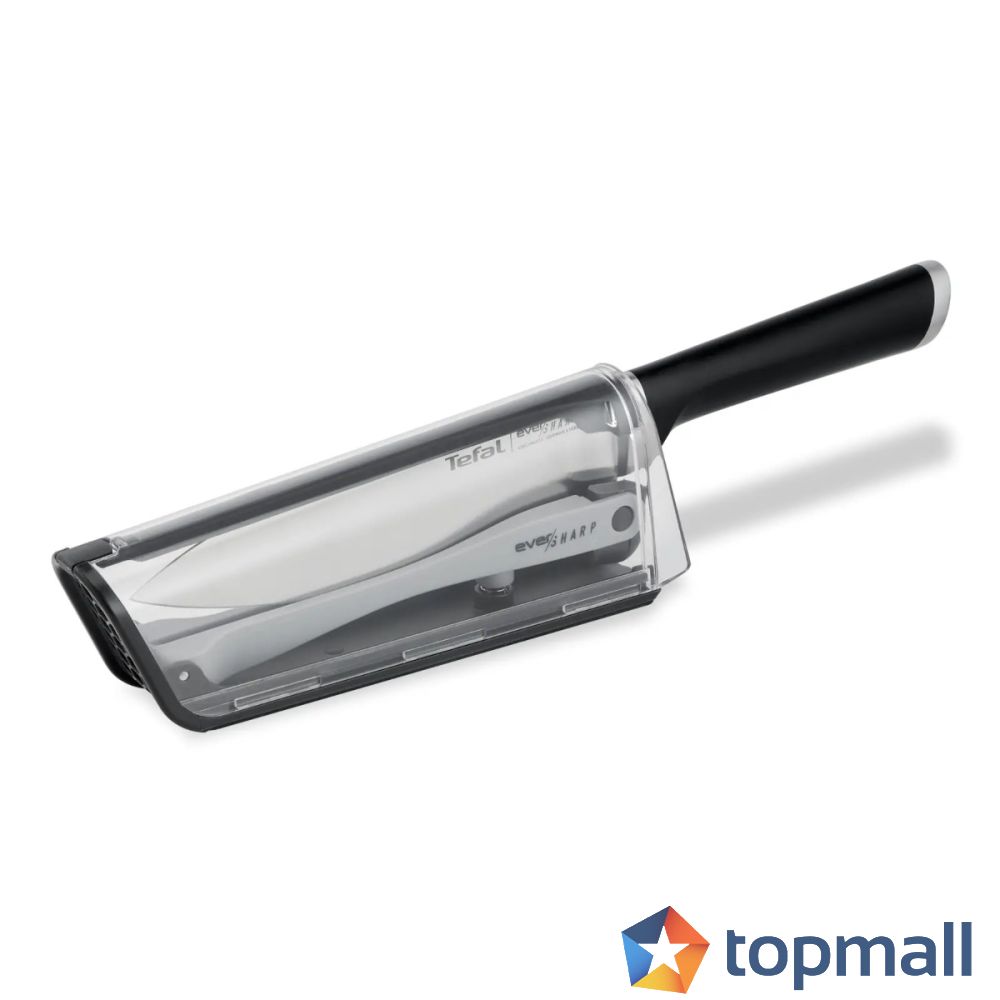 Ever Sharp е най-безопасният и иновативен начин за рязане и заточване. Благодарение на изключителната технология за заточване*, вградена директно в калъфа на ножа, острието се заточва автоматично под идеален ъгъл преди и след всяка употреба. Вградената система за заключване - лесно освобождавана чрез натискане на дръжката - държи калъфа здраво на място, а защитните крила отвеждат пръстите далеч от острието, за безопасно заточване и пълно спокойствие. Изработен от немска неръждаема стомана за впечатляваща издръжливост във времето, този универсален 16,5-сантиметров нож за готвачи е идеален за всички ежедневни нужди при приготвяне на храна и се съхранява лесно на кухненския плот или прибран в чекмеджето.