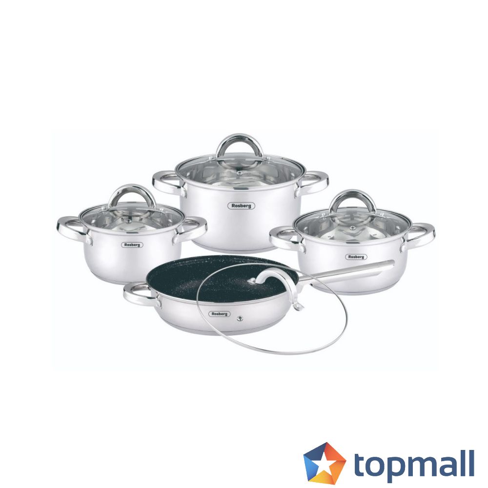 Комплект тенджери Rosberg R51210L8T, 4 ч, Тиган с мраморно покритие, Индукция, Двойно дъно ,Инокс, (35930825)
