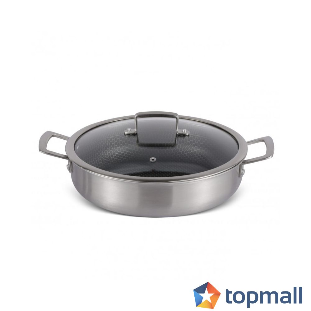 Плитка тенджера със стъклен капак Edenberg EB-14922, 3.7 литра, 28 см, Трислойно покритие Eterna, Индукция, Инокс, (17571)