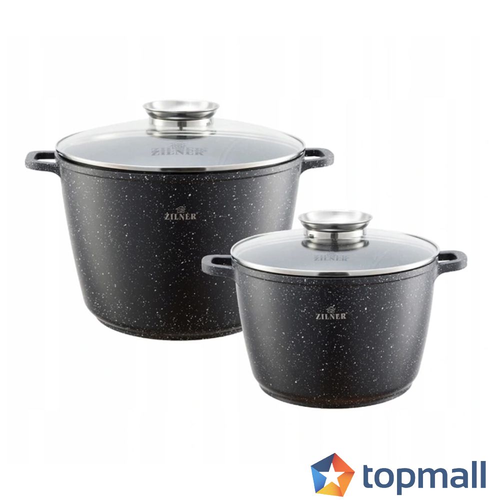 Комплект тенджери с мраморно покритие Zilner ZL 7226, 4 части, 6.2/10.2 литра, Индукция, Черен