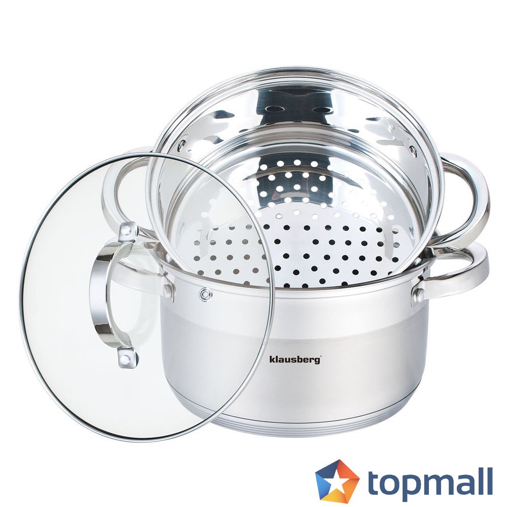 Тенджера за готвене на пара с капак Klausberg KB 7138, 20 см, 3.1 литра, 3-слойно дъно, Инокс