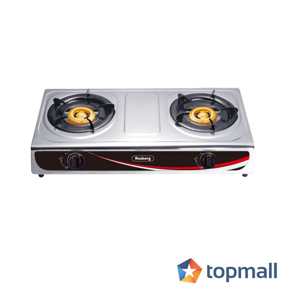 Двоен газов котлон Rosberg R51454AD, 5.4 kWh, 30 mbar, Автоматично запалване, 2 чугунени горелки, Инокс, (17862)