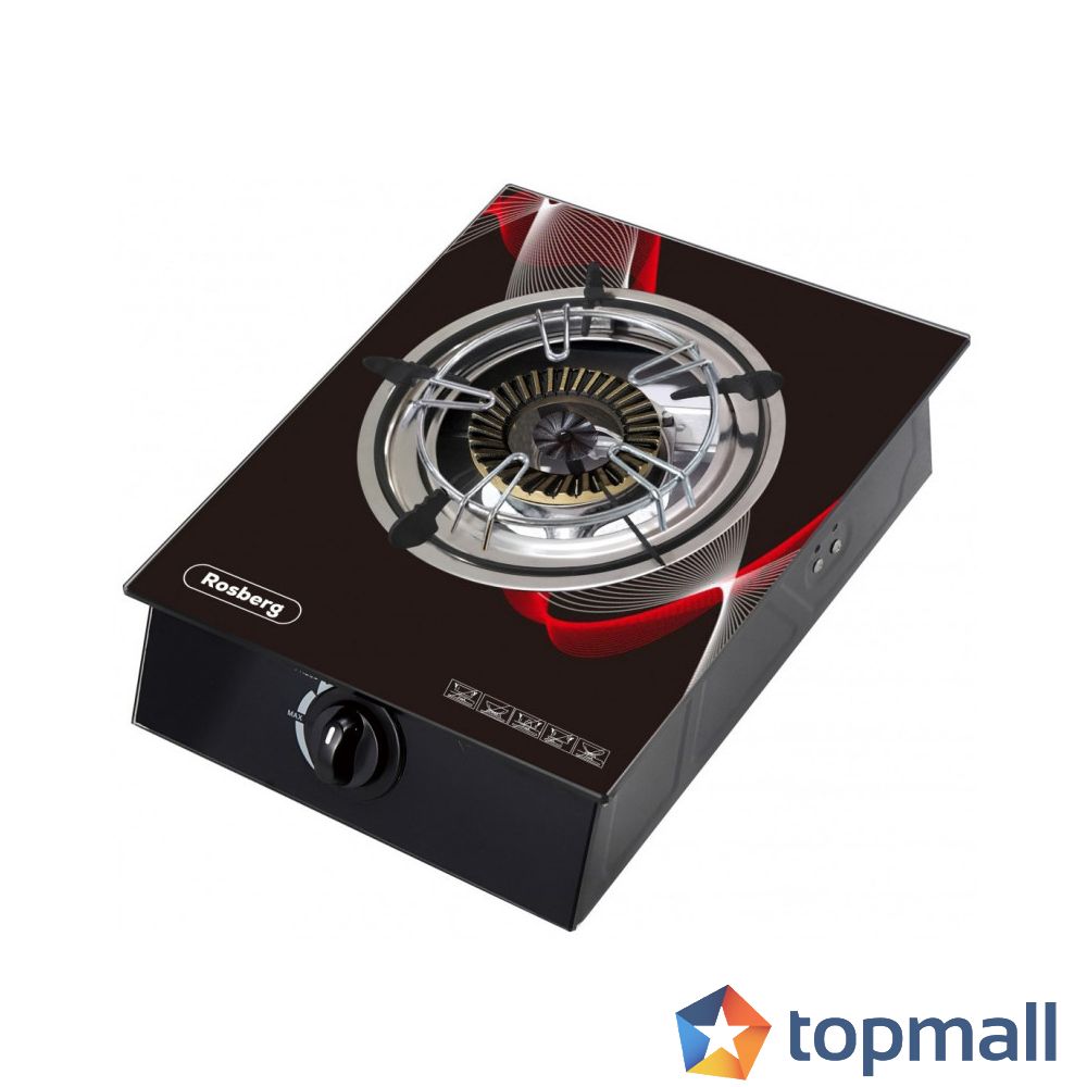 Единичен газов котлон Rosberg Premium RP51454G, Закалено стъкло, 30 mbar, Чугунена горелка, 2 поставки, Черен, (15766)