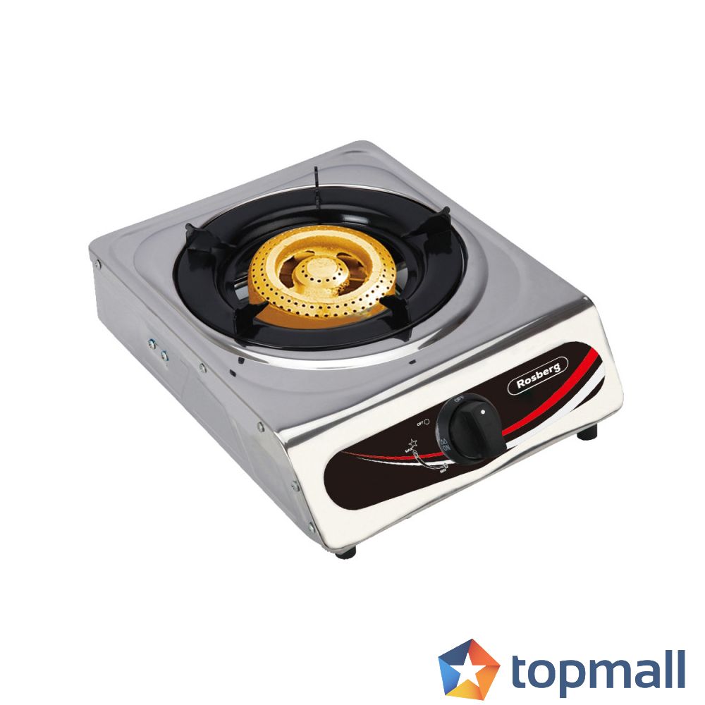 Единичен газов котлон Rosberg R51454A, 2.7 kWh, 30 mbar, Автоматично запалване, Чугунена горелка, Инокс, (14530)