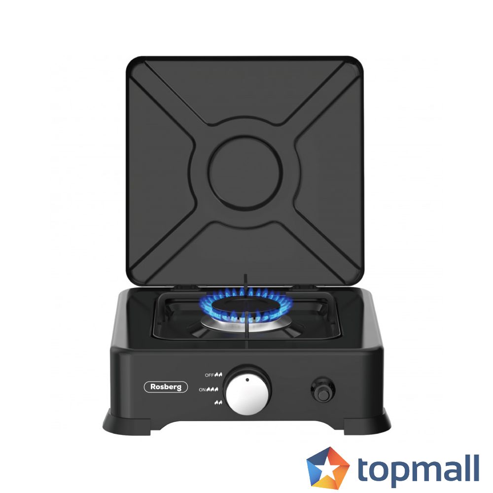 Единичен газов котлон с капак Rosberg R51454E1L, 2.2 kWh, 30 mbar, Автоматично запалване, Черен, (20671)