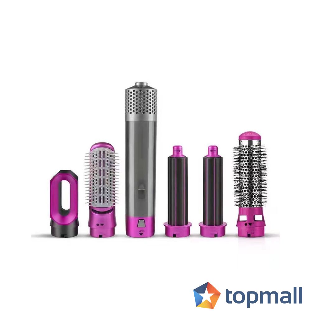 Комплектът включва 5 приставки, сред които две сваляеми спираловидни приставки за къдрици (30mm), приставка за изсушаване, четка за оформяне на къдрици и мултифункционална четка. Въртящият се кабел и халката за окачване добавят към удобството при използване и съхранение. С елегантния си лилав цвят, тази четка е перфектният избор за стилни прически всеки ден.