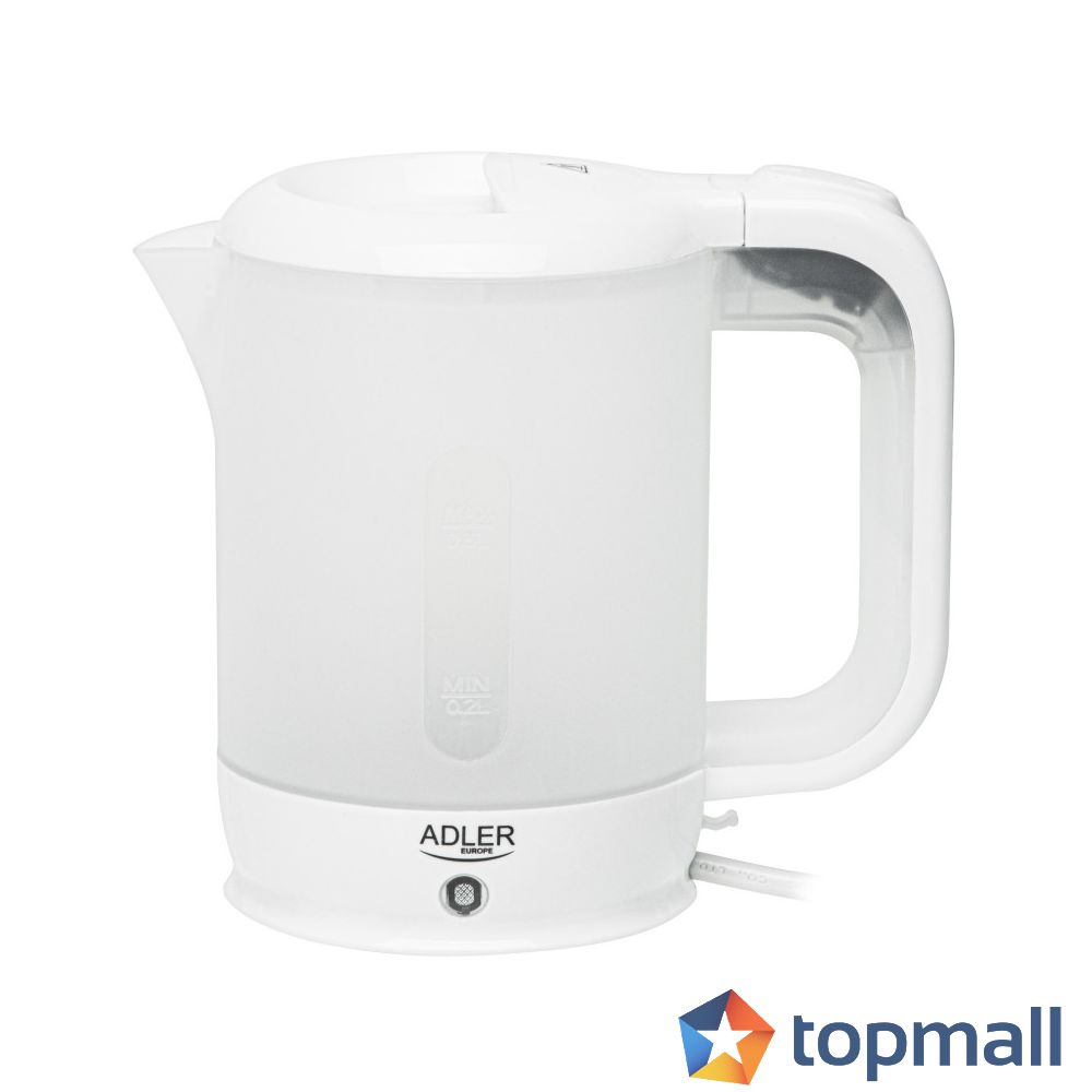 Електрическа кана Adler AD 1381, 900W, 0.5 л, 2 чаши и лъжичка, Защита от работа вода, Бял, (35940355)