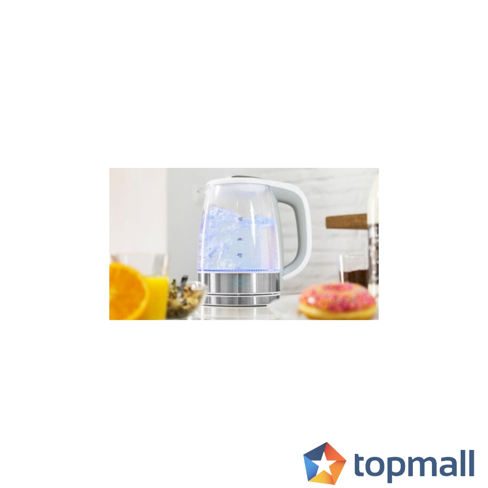 2200 W ЗА ПО-БЪРЗО КИПЕНЕ Водата к ипи бързо благодарение на своите 2200 W мощност.   След няколко минути и по всяко време на деня ще имате готовите горещи напитки. МАКСИМАЛНА СИГУРНОСТ Филтърът е сменяем за лесно почистване. С истема за защита срещу прегряване.   Ако свърши вода или достигне висока температура, тя автоматично се изключва, така че не трябва да се притеснявате за нищо. Капацитет 1.7 л Изработена от висококачествено боросиликатно стъкло. Максимална устойчивост срещу удари и петна. Високо устойчив на корозия и напълно без BPA и други токсини. Мощност 2200 W Включва подвижен и миещ се филтър 360-градусова основа Лесна за почистване отоплителна основа със скрити нагревателни елементи, вградена в основата. LED светлина, която се включва при работа на чайника и варира в зависимост от избраната температура. Ергономична дръжка на студено докосване за по-сигурна и по-удобна употреба. Включва прозорец с индикатор за нивото на водата. Двойна система за защита, автоматично изключване срещу работа при празен резервоар и прегряване. Нехлъзгаща се основа Гаранция: 24 месеца