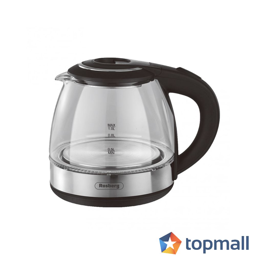 Електрическа кана Rosberg R51230Q, 1500W, 1 L, Стъклена, LED светлини, Инокс/черен, (17009)