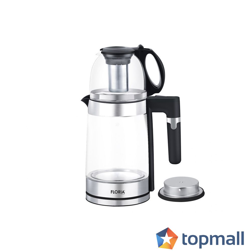 Електрическа кана за турски чай Floria ZLN1757, 1500W, 1.8+1.2 л, Инфузер, Боросиликатно стъкло, Черен, (35944178)